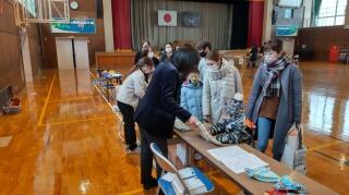 新型コロナウィルス感染症対策として、一斉の説明会ではなく、体育館に6ヶ所のブースを設け、それぞれのところで手続きをしたり、説明を聞いたりしていただきました。