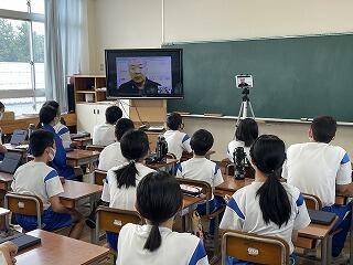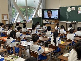 全校児童は、教室でモニタを通して校長先生の話を聞きました。