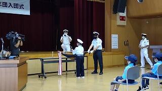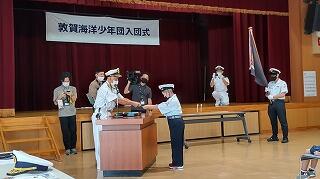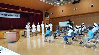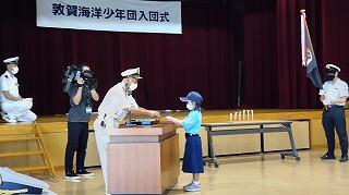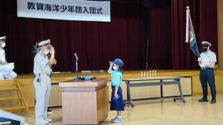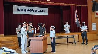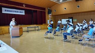 敦賀市教育長や海上保安庁の方、海洋少年団の指導者の方々、そして、市内小中学校の校長が参列する中、入団式が行われました。