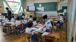 教室に入って、先生や友達と顔を合わせて、夏休みの思い出話に花が咲きました。