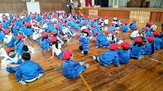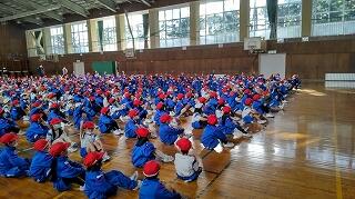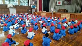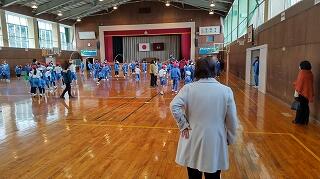 体育館に集合するところまで、全校が静かに落ち着いて行動できました。