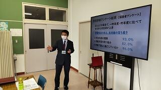 その後、部屋に戻って、9月以降の学校の活動の様子や、学校評価アンケートの結果と考察、そして、スクールプランの達成状況について説明しました。