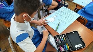 3年生は、彫刻刀を使って初めての版画に取り組んでいます。