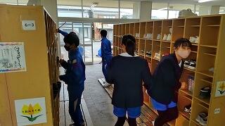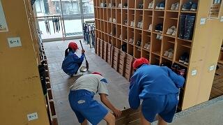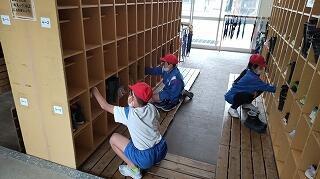前半は、各自の下足箱や教室のロッカーなどのそうじです。