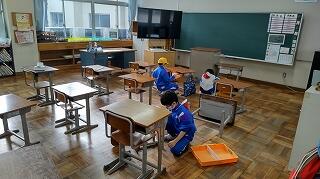 各教室では、自分の机やロッカーなどをきれいにしています。