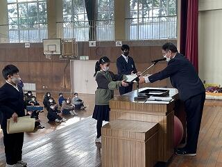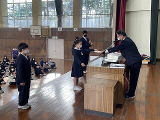 たくさんの皆さんが入賞しましたので、代表児童が登壇して賞状を受け取りました。