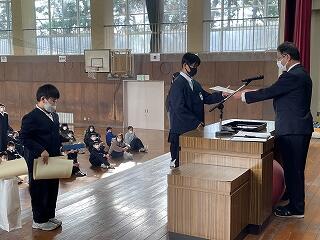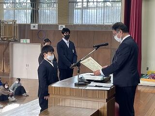 表彰に続いて、校長と生徒指導担当教諭からお話をしました。