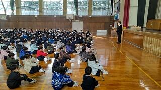 全校での集会を行いました。