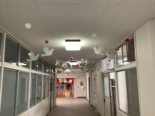 校舎のあちらこちらは、6年生への祝福と励ましの掲示で一杯になりました。