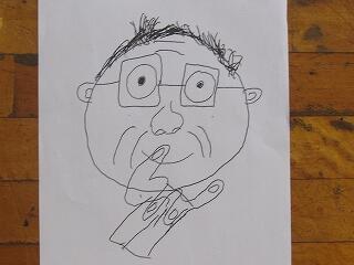 これは、校長室に遊びに来た子が書いてくれた私の似顔絵です。