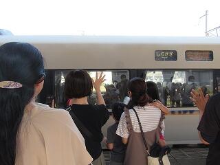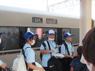 敦賀駅で家族や先生たちに見送られて元気に旅立ちました。