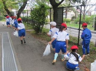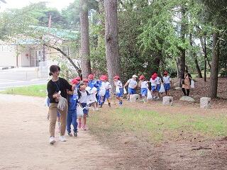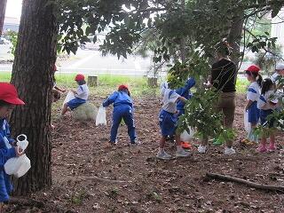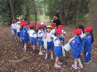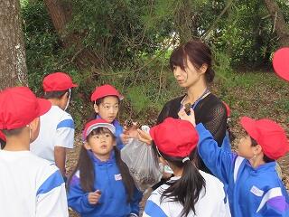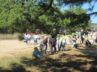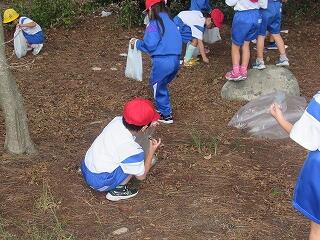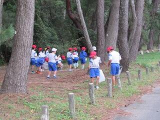1年生が学校前の松林に出かけました。