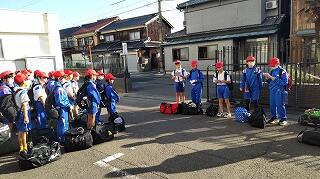 秋晴れの中、出発式。