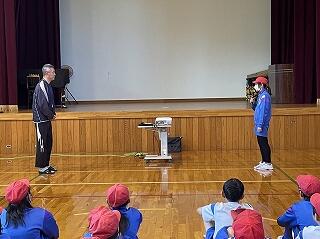 松原小のみんなの発表が終わると、相手の学校からの発表です。