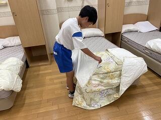 ベッドメーキングや清掃活動、入浴などルールと規律を守って生活しました。