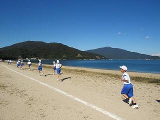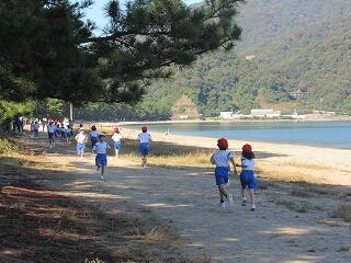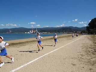 校庭を1周走って、海岸コースを走ります。