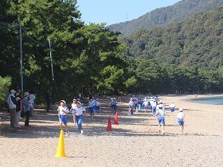 2年生のスタートを皮切りに、全学年自分の目標達成を目指して松原海岸を走り抜きました。