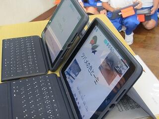 タブレットを使ってひとりひとりで考えたり、みんなで考えを話し合ったりして、考えを深めました。