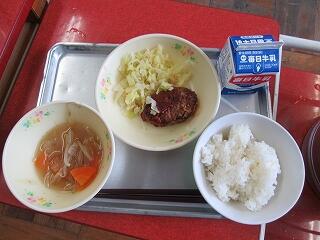 今日の献立は、ハンバーグとコンソメスープです。
