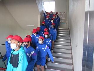 今日は、「家庭科室から出火」という設定で避難訓練を行いました。