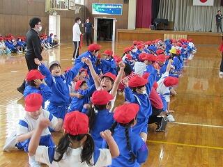 また、朝の会の時間には、各学年の教室に出向いて、応援方法を教えています。