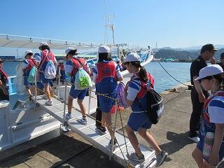 今日は、若狭高校の実習船「雲龍丸」で5年生が乗船体験を行いました。