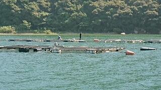 敦賀湾の養殖いけすの様子も海の上から見学しました。