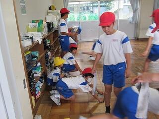 みんなが下校した後に、先生たちで教室のワックスがけを行いました。