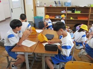 担当の先生のお話を聞いて、それぞれ登校下校についての振り返りを行いました。