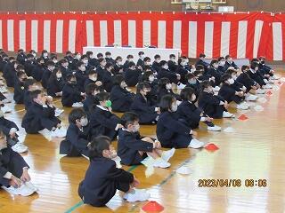 新しいクラスの仲間で並び、体育館に入場。
