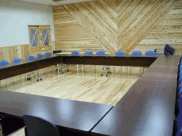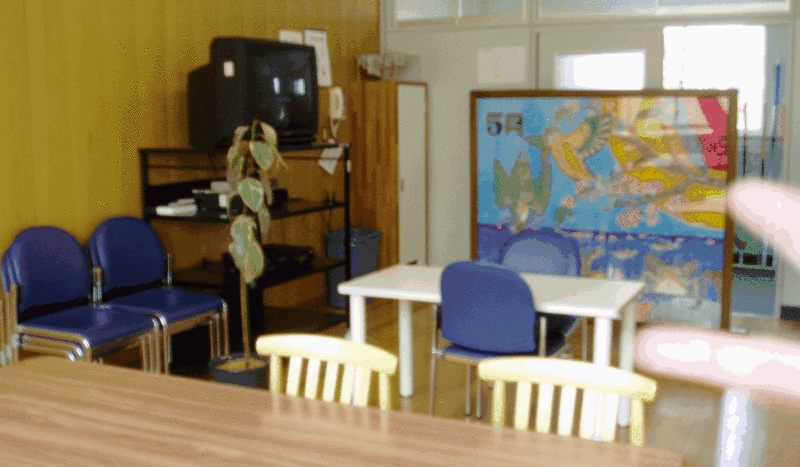 きらめき きらめきは、先生方が会議などで使用する部屋です。木目を生かしたかべの造りが、とても美しいですよ。 |