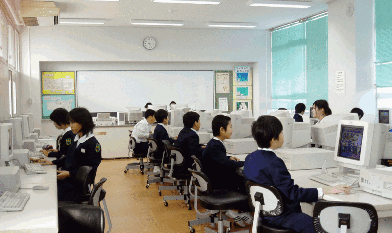 コンピューター室 コンピューター室には、たくさんのパソコンが置いてあります。クラブや委員会、授業の調べ学習でも使いますよ。 |