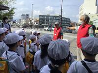 9月13日(火)校外学習で氣比神宮へ出かけました。ボランティアガイドの方から、歴史的なこと、鳥居の大きさ、参拝の仕方など、さまざまなことを分かりやすく説明していただきました。子どもたちの身近な氣比神宮で、知らないことがたくさんあったので、興味津々でお話を聞いていました。これから、タブレットを使って、一人ひとりまとめていきます。