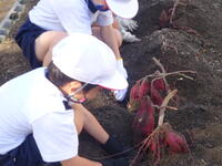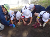 10月13日、秋晴れの空の下、2年生がいも掘りをしました。