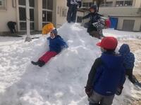 雪だるまをつくったり、雪合戦をしたり、すべり台をつくったり、とても楽しそうでした。雪の上に寝っ転がる子も…。1・2年生、寒さに負けず元気いっぱいです。