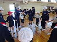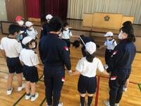 後半は、6年生とチーム対抗で「輪くぐりゲーム」をしたり、「つばめダンス」を一緒に踊ったりして、楽しい時間を過ごしました。6年生との思い出がまた一つ増えました。