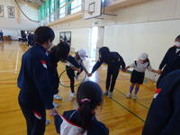 次に、縄跳びで個人がエントリーした技(振り跳び、あや跳び、後ろあや跳び、二重跳び、二重あや跳び)を競い合いました。「がんばれ!」と大きな声援を送り盛り上がりました。6年生の三重跳びの素晴らしい技に歓声が上がっていました。3年生は、刺激を受け、早速昼休みに三重跳びの練習をしていました。6年生と思い出に残る楽しい時間を過ごすことができました。6年生のみなさん、ありがとう。