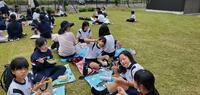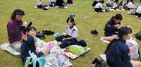 きいぱすの方々が、お昼のお弁当を食べる場所にぴったりの芝生の広場を貸してくださいました。しかも、私たちのためにきれいに刈ってくださっていました。ありがとうございます。