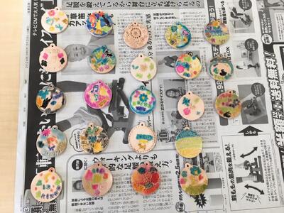 メッセージを貼る台紙には、1年生のかわいい手形を押しました。
