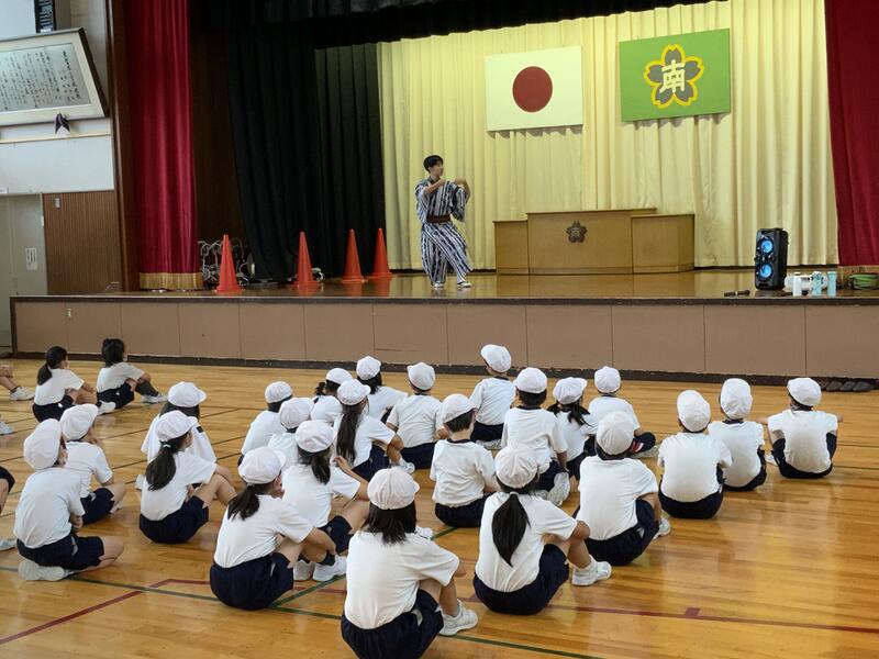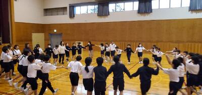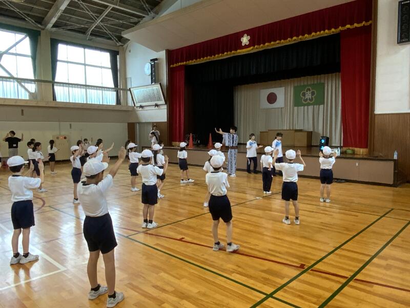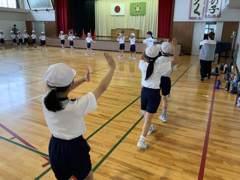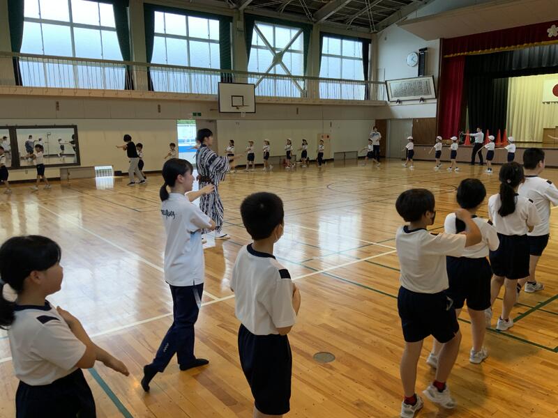 「すごい!!」「わたしもあの技してみたい!」とすっかりやる気満々で、そのあと6年生に教えてもらいながら一緒に練習しました。