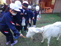 始めは山羊を怖がっていた子も「さくらちゃ~ん」と声をかけ、餌をやったり体を撫でたりしていました。