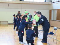 まず、全員で「南の子安全宣言」を行いました。その後、いつも登下校でお世話になっている見守り隊の方々に感謝の気持ちを伝え、3年生が手作りしたプレゼントをお渡ししました。