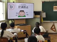 栄養指導の先生と一緒に「よくかんで食べよう」の学習をしました。卑弥呼の時代の食事のかむ回数と今を比べて、その違いの原因を知ったり、かむことの大切さを考えたりしました。1口30回噛むのは大変です。できるだけ、かみごたえのある食べ物を食べましょう。