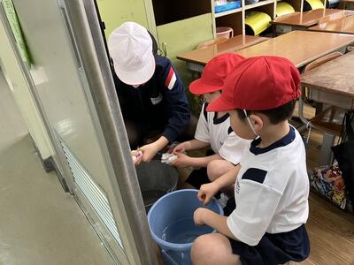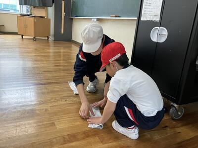 いよいよ掃除も1年生と一緒にできることになりました。初めて掃除をする1年生に優しく教える6年生。雑巾のしぼり方や拭き方、教えてもらって1年生も上手に出来ました。南の子リーダー、これからもよろしくね!