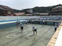 「全校の水泳学習のために」と、黙々と壁や床を磨き、あっという間にキレイになりました。
