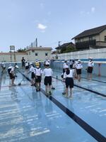 6年生の修学旅行中に、5年生が先陣を切ってプール清掃を行いました。