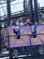 どのアトラクションも、待ち時間なく体験することができました。そのため、繰り返しジェットコースターやバイキングに挑戦する人もいたほどです。みんな時間いっぱい遊び尽くしました。