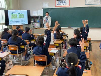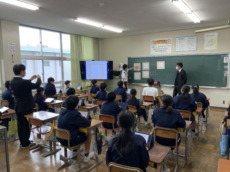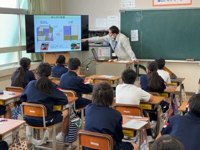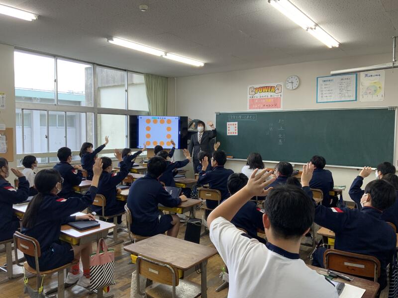 気比中学校の先生に来ていただき、算数の学習をしました。4月から中学生になる6年生にとって、中学校の雰囲気や学習について知ることができるよい時間になりました。