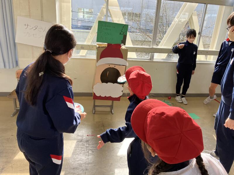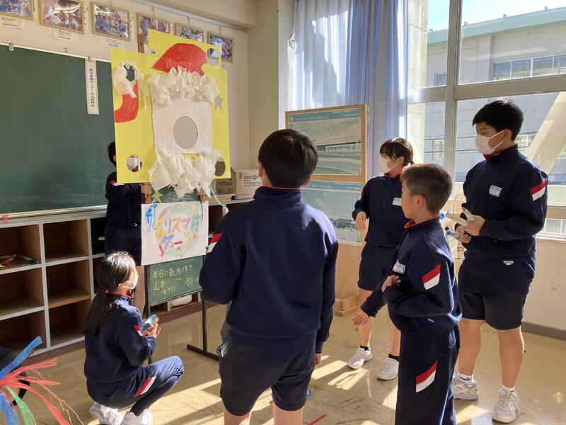6年生で考えた簡単な遊びに1年生から5年生に参加してもらい、クリスマスパーティーを開催しました。