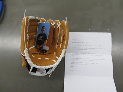 箱の中には、大谷選手からのメッセージと3つのグローブが入っていました。